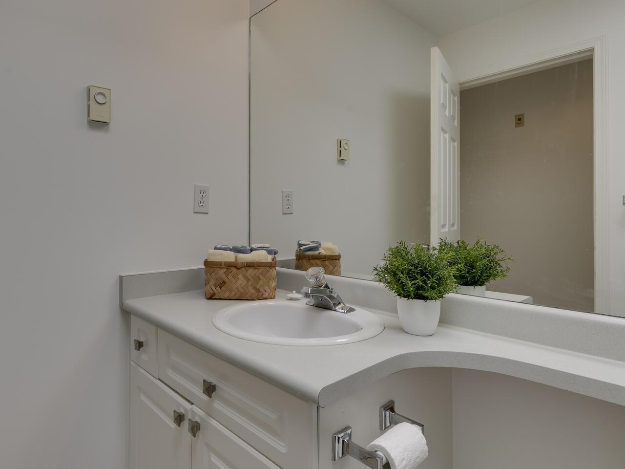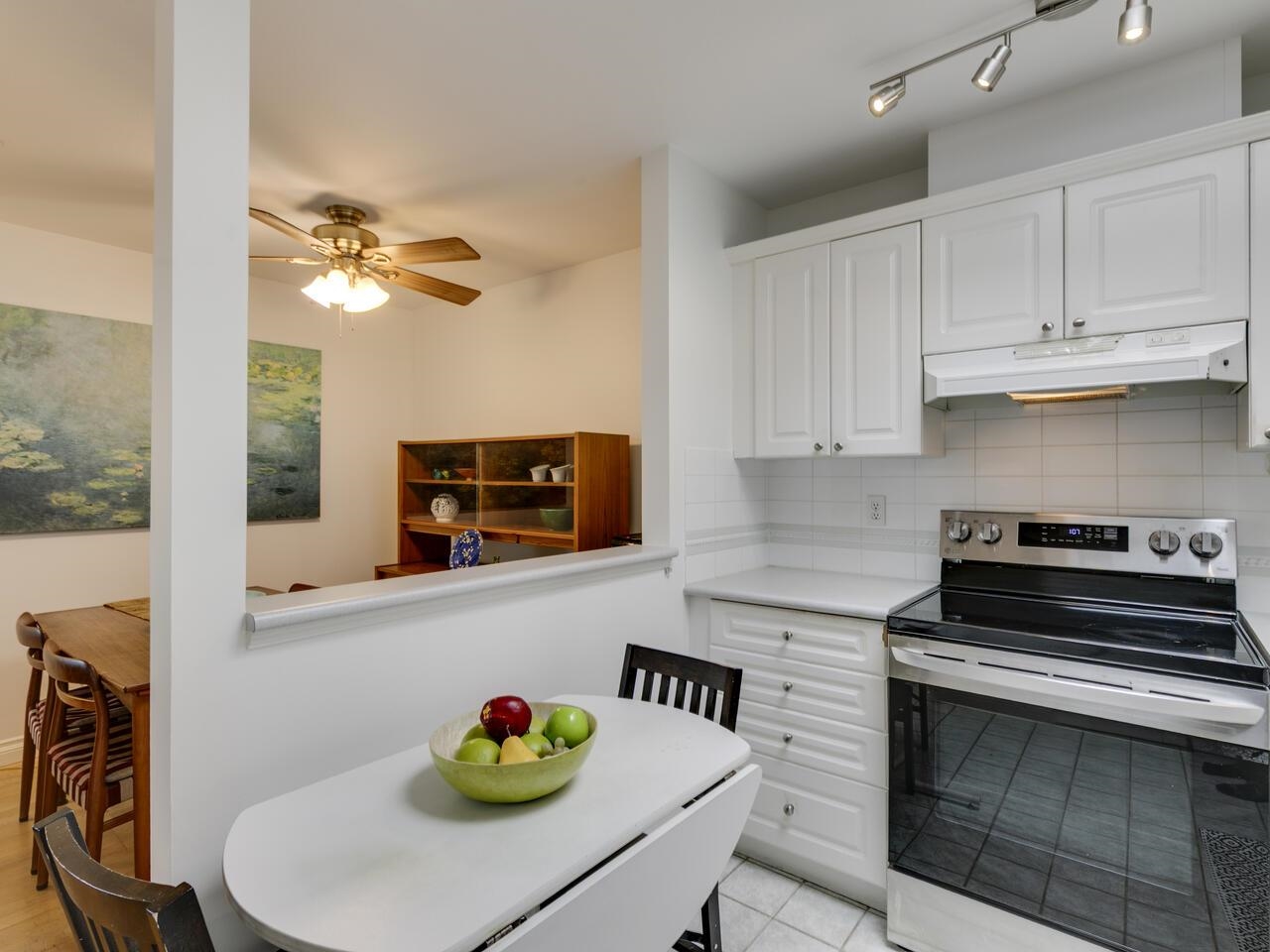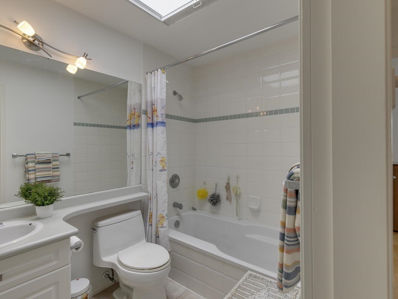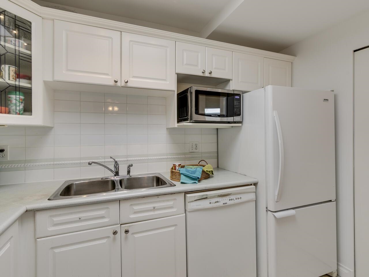 The Library offers a great central Lonsdale location for this meticulous top-floor, two-bedroom/two-bathroom home. Offering 1,068 sq. ft. of freshly painted living space, the vaulted ceiling and skylights fill the area with natural light. Generous living & dining rooms are perfect for entertaining, opening to a spacious Trex balcony. Kitchen has ample counter space & cupboards. A separate laundry room offers tons of storage. Large primary bedroom has an ensuite featuring a walk-in shower, double sinks, and a walk-in closet. Second full bathroom with a soaker tub. Includes one parking stall and l storage locker. Building amenities include a gym, bike storage, and a meeting room. With a walk score of 93, this location is a walker's paradise! Steps to public transit & Victoria Park